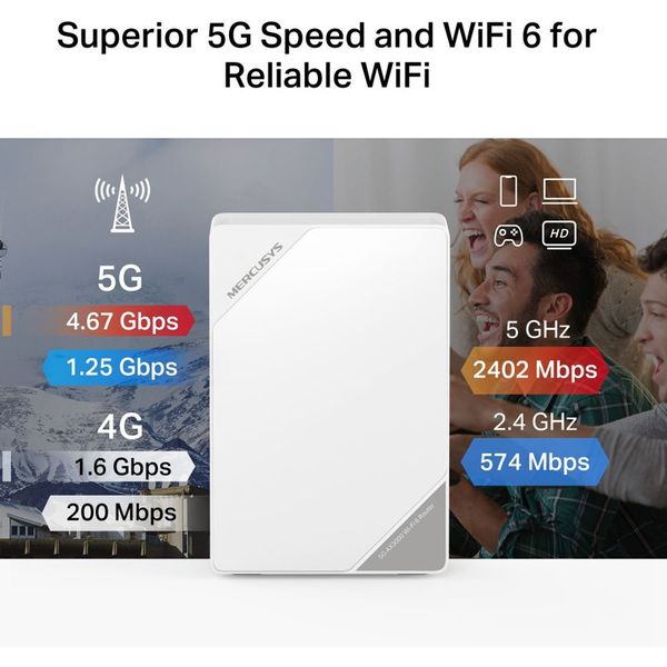 Με Wi-Fi 6 AX3000, το MB520-5G προσφέρει ταχύτητες έως 2402 Mbps στη ζώνη 5 GHz και έως 574 Mbps στα 2.4 GHz. Η τεχνολογία Wi-Fi 6 εξασφαλίζει καλύτερη απόδοση σε περιβάλλοντα με πολλές συσκευές, μεγαλύτερη σταθερότητα και χαμηλότερη καθυστέρηση.