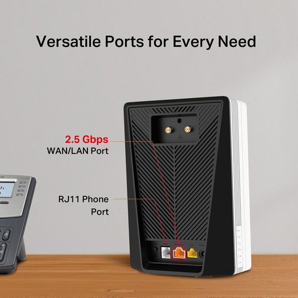 Διαθέτει θύρα τηλεφώνου RJ11 για σταθερή τηλεφωνία μέσω VoLTE, επιτρέποντας ταυτόχρονη χρήση internet και κλήσεων με υψηλή ποιότητα ήχου.