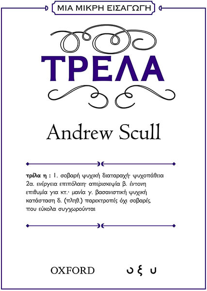 Η τρέλα είναι κάτι που μας τρομάζει και μας εξιτάρει όλους. Στο βιβλίο «ΜΙΑ ΜΙΚΡΗ ΕΙΣΑΓΩΓH: Tρέλα», ο Andrew Scull ερευνά με διάθεση προκλητική και ψυχαγωγική τις κοινωνικές, πολιτιστικές, ιατρικές και καλλιτεχνικές αποτυπώσεις της ψυχικής διαταραχής εδώ και παραπάνω από δύο χιλιάδες χρόνια. Δείχνει πώς η τρέλα έχει ανά τους αιώνες περιγραφεί στην ποίηση, την πεζογραφία, το θέατρο και τις εικαστικές τέχνες και εξηγεί πώς δημιουργήθηκε μια ολόκληρη βιομηχανία για τη διαχείριση και την καταστολή της. Το σημαντικότερο, όμως, είναι πώς η τρέλα διαταράσσει βαθιά τις κοινές μας πεποιθήσεις, απειλεί την κοινωνική δομή, ανατρέπει τη ροή της καθημερινής ζωής και αναστρέφει την εμπειρία και τις προσδοκίες μας.