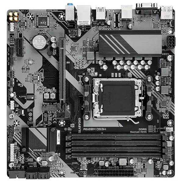 ΜΗΤΡΙΚΗ GIGABYTE A620M DS3H D5 MICRO-ATX RETAILPER.607683PER.607683GIGABYTEGIGABYTEΜΗΤΡΙΚΗ ΚΑΡΤΑΚατηγορία: ΜΗΤΡΙΚΗ ΚΑΡΤΑ •GIGABYTE στην κατηγορία ΜΗΤΡΙΚΗ ΚΑΡΤΑ Οι μητρικές Ultra Durable της GIGABYTE έχουν κατασκευαστεί με βέλτιστα εξαρτήματα και παρέχουν κορυφαία και διαχρονική απόδοση. -Oι μητρικές πλακέτες της σειράς UD της Gigabyte χρησιμοποιούν ψηφιακό σχεδιασμό MOSFETs 5+2+2 φάσεων PWM + Low RDS(on) για την υποστήριξη των επεξεργαστών νέας γενιάς της AMD, προσφέροντας απίστευτη ακρίβεια στην παροχή ενέργειας στα πιο απαιτητικά και ευαίσθητα στην ενέργεια εξαρτήματα της μητρικής πλακέτας, καθώς και βελτιωμένη απόδοση του συστήματος και απόλυτη κλιμάκωση του υλικού. -GbE LAN: Το GbE LAN διαθέτει μια εφαρμογή διαχείρισης εύρους ζώνης δικτύου, η οποία συμβάλλει στη βελτίωση της καθυστέρησης του δικτύου και στη διατήρηση χαμηλών χρόνων ping για καλύτερη απόκριση σε πολυσύχναστα περιβάλλοντα LAN. -Smart Fan 6: Το Smart Fan 6 περιέχει αρκετές μοναδικές λειτουργίες ψύξης που εξασφαλίζουν ότι ο υπολογιστής παιχνιδιών διατηρεί την απόδοσή του, ενώ παραμένει δροσερός και αθόρυβος. Οι πολλαπλές κεφαλές ανεμιστήρων μπορούν να υποστηρίξουν ανεμιστήρα PWM/DC και αντλία και οι χρήστες μπορούν εύκολα να ορίσουν κάθε ανεμιστήρα με βάση διαφορετικούς αισθητήρες θερμοκρασίας σε όλο το σύστημα μέσω διαισθητικού περιβάλλοντος εργασίας χρήστη. -Το GIGABYTE Control Center (GCC) είναι ένα ενιαίο λογισμικό για όλα τα προϊόντα που υποστηρίζονται από την GIGABYTE. Παρέχει πρόσφατα σχεδιασμένη διαισθητική διεπαφή χρήστη για τον έλεγχο όλων των βασικών λειτουργιών.• Τύπος: Micro ATX Form Factor (24.4cm x 24.4c).• Επεξεργαστές: AMD Socket AM5, support for: AMD Ryzen 7000/ Ryzen 8000 Series.• Chipset: AMD A620.• Μνήμη: 4 x DDR5 DIMM sockets έως 192 GB (48 GB single DIMM capacity), 7600(OC)/ 7200(OC)/ 7000(OC)/ 6800(OC)/ 6600(OC)/ 6400(OC)/ 6200(OC)/ 6000(OC)/ 5600(OC)/ 5200/ 4800 MT/s memory modules.• Graphics: 1x DisplayPort - 3840x2160@144 Hz, 1 x HDMI - 4096x2160@60 Hz, 1 x D-Sub - 1920x1200@60 Hz.• LAN: Realtek GbE LAN chip (1 Gbps/100 Mbps/10 Mbps).• Θύρες επέκτασης: 1 x PCI Express x16 slot (PCIEX16), 1 x PCI Express x1 - supporting PCIe 3.0.• Storage Interface: 1 x M.2 connector (M2A_CPU) - supporting Socket 3, M key, type 2580 SSDs, 4 x SATA 6Gb/s, RAID 0, RAID 1, RAID 10.• Ηχος: Realtek Audio CODEC, High Definition Audio, 2/4/5.1/7.1-channel.• Internal I/O Connectors: 1 x 24-pin ATX main power connector, 1 x 8-pin ATX 12V power connector, 1 x CPU fan header, 2 x system fan headers, 1 x addressable LED strip header, 1 x RGB LED strip header, 1 x M.2 Socket 3 connector, 4 x SATA 6Gb/s connectors, 1 x front panel header, 1 x front panel audio header, 1 x USB 3.2 Gen 1 header, 1 x USB 2.0/1.1 header, 1 x Trusted Platform Module header (For the GC-TPM2.0 SPI/GC-TPM2.0 SPI 2.0/GC-TPM2.0 SPI V2 module only), 1 x Clear CMOS jumper• Back Panel Connectors: 1 x PS/2 keyboard/mouse, 1 x USB Type-C (USB 3.2 Gen 1 support), 1 x USB 3.2 Gen 1, 4 x USB 2.0/1.1, 1 x HDMI, 1 x DisplayPort, 1 x D-Sub, 1 x RJ-45, 3 x audio jacks.• Συμβατό λειτουργικό σύστημα: Windows 10 64-bit, Windows 11 64-bit.• Εγγύηση: 2 χρόνια. DOA 7 ημερών ΜΗΤΡΙΚΗ GIGABYTE A620M DS3H D5 MICRO-ATX RETAIL