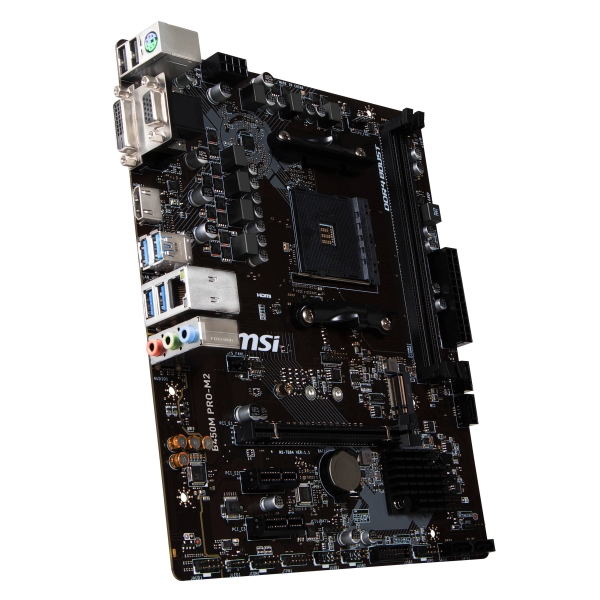 • Τύπος: M-ATX Form Factor (24.4 cm x 20.6 cm). • Επεξεργαστες: Supports AMD Ryzen 1st and 2nd Generation/ Ryzen with Radeon Vega Graphics/ Athlon with Radeon Vega Graphics Processors for Socket AM4. (Κάντε κλικ εδώ για να δείτε τους συμβατούς επεξεργαστές από το site του κατασκευαστή) • Chipset: AMD Β450. • Μνήμες: 2 x DDR4 memory slots, support up to 32GB, Supports DDR4 1866/ 2133/ 2400/ 2667 MHz by JEDEC, and 2667/ 2800/ 2933/ 3000/ 3066/ 3200/ 3466 MHz by A-XMP OC mode, Dual channel memory architecture, Supports ECC UDIMM memory (non-ECC mode), Support non-ECC UDIMM memory. • Υποστήριξη δίσκων: AMD B450 Chipset: 4 x SATA 6Gb/s ports RAID 0, RAID1 και RAID 10, 1 x M.2 slot (Key M). • Θύρες επέκτασης: 1 x PCIe 3.0 x16 slot(PCI_E1), 2 x PCIe 2.0 x1 slots. • Εσωτερικές συνδέσεις: 1 x 24-pin ATX main power connector, 1x 8-pin ATX 12V power connector, 4x SATA 6Gb/s connectors, 2x USB 2.0 connectors (supports additional 4 USB 2.0 ports), 1x USB 3.1 Gen1 connector (supports additional 2 USB 3.1 Gen1 ports), 1x 4-pin CPU fan connector, 1x 4-pin system fan connector, 1x Front panel audio connector, 2x Front panel connectors, 1x TPM module connector, 1x Chassis Intrusion connector, 1x Serial port connector, 1x LED strip connector, 1x Clear CMOS jumper. • Εξωτερικές συνδέσεις: PS/2 Port, VGA Port, HDMI, 2xUSB 3.1 Gen1 Port, LAN Port, HD Audio Connectors, 2xUSB 2.0, DVI-D Port, 2xUSB 3.1 Gen1 Port. • Γραφικά: Μέσω τοποθέτησης κάρτας γραφικών PCI-Express ή μέσω επεξεργαστή που διαθέτει ενσωματωμένα γραφικά. Ο επεξεργαστής χρησιμοποιεί τις ενσωματωμένες θύρες της μητρικής και υποστηρίζει τις παρακάτω αναλύσεις: VGA maximum resolution of 2048x1280 @60Hz, 1920x1200 @60Hz, DVI-D maximum resolution of 1920x1200 @60Hz, HDMI 1.4 maximum resolution of 4096x2160 @30Hz, 2560x1600 @60Hz. • Ενσωματωμένη κάρτα ήχου: Realtek ALC887 Codec, 7.1-Channel High Definition Audio. • Ενσωματωμένη κάρτα δικτύου: 1 x Realtek 8111H Gigabit LAN controller. • Συμβατό λειτουργικό σύστημα: Microsoft Windows 10 64-bit, Microsoft Windows 7 64-bit. • Εγγύηση: 3 χρόνια. DOA 7 ημερών