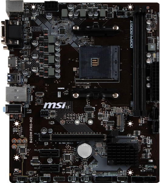ΜΗΤΡΙΚΗ MSI B450M PRO-M2 RETAILPER.524022PER.524022MSIMSIΜΗΤΡΙΚΗ ΚΑΡΤΑΚατηγορία: ΜΗΤΡΙΚΗ ΚΑΡΤΑ •MSI στην κατηγορία ΜΗΤΡΙΚΗ ΚΑΡΤΑ Ο συνδυασμός ποιότητας που μπορείτε να βασιστείτε με κορυφαία απόδοση και έξυπνες επιχειρηματικές λύσεις είναι βασικές πτυχές των motherboards MSI PRO SERIES. Σχεδιασμένη για να ικανοποιεί ακόμα και τον πιο απαιτητικό επαγγελματία, αυτές οι μητρικές θα χωρέσουν σε οποιοδήποτε υπολογιστή. Διευκολύνετε τη ζωή σας και στηρίζετε την επιχείρησή σας με εξαιρετικά σταθερή, αξιόπιστη και μακροχρόνια κορυφαία απόδοση. • Τύπος: M-ATX Form Factor (24.4 cm x 20.6 cm).• Επεξεργαστες: Supports AMD Ryzen 1st and 2nd Generation/ Ryzen with Radeon Vega Graphics/ Athlon with Radeon Vega Graphics Processors for Socket AM4. (Κάντε κλικ εδώ για να δείτε τους συμβατούς επεξεργαστές από το site του κατασκευαστή)• Chipset: AMD Β450.• Μνήμες: 2 x DDR4 memory slots, support up to 32GB, Supports DDR4 1866/ 2133/ 2400/ 2667 MHz by JEDEC, and 2667/ 2800/ 2933/ 3000/ 3066/ 3200/ 3466 MHz by A-XMP OC mode, Dual channel memory architecture, Supports ECC UDIMM memory (non-ECC mode), Support non-ECC UDIMM memory.• Υποστήριξη δίσκων: AMD B450 Chipset: 4 x SATA 6Gb/s ports RAID 0, RAID1 και RAID 10, 1 x M.2 slot (Key M).• Θύρες επέκτασης: 1 x PCIe 3.0 x16 slot(PCI_E1), 2 x PCIe 2.0 x1 slots.• Εσωτερικές συνδέσεις: 1 x 24-pin ATX main power connector, 1x 8-pin ATX 12V power connector, 4x SATA 6Gb/s connectors, 2x USB 2.0 connectors (supports additional 4 USB 2.0 ports), 1x USB 3.1 Gen1 connector (supports additional 2 USB 3.1 Gen1 ports), 1x 4-pin CPU fan connector, 1x 4-pin system fan connector, 1x Front panel audio connector, 2x Front panel connectors, 1x TPM module connector, 1x Chassis Intrusion connector, 1x Serial port connector, 1x LED strip connector, 1x Clear CMOS jumper.• Εξωτερικές συνδέσεις: PS/2 Port, VGA Port, HDMI, 2xUSB 3.1 Gen1 Port, LAN Port, HD Audio Connectors, 2xUSB 2.0, DVI-D Port, 2xUSB 3.1 Gen1 Port.• Γραφικά: Μέσω τοποθέτησης κάρτας γραφικών PCI-Express ή μέσω επεξεργαστή που διαθέτει ενσωματωμένα γραφικά. Ο επεξεργαστής χρησιμοποιεί τις ενσωματωμένες θύρες της μητρικής και υποστηρίζει τις παρακάτω αναλύσεις: VGA maximum resolution of 2048x1280 @60Hz, 1920x1200 @60Hz, DVI-D maximum resolution of 1920x1200 @60Hz, HDMI 1.4 maximum resolution of 4096x2160 @30Hz, 2560x1600 @60Hz.• Ενσωματωμένη κάρτα ήχου: Realtek ALC887 Codec, 7.1-Channel High Definition Audio.• Ενσωματωμένη κάρτα δικτύου: 1 x Realtek 8111H Gigabit LAN controller.• Συμβατό λειτουργικό σύστημα: Microsoft Windows 10 64-bit, Microsoft Windows 7 64-bit.• Εγγύηση: 3 χρόνια. DOA 7 ημερών ΜΗΤΡΙΚΗ MSI B450M PRO-M2 RETAIL