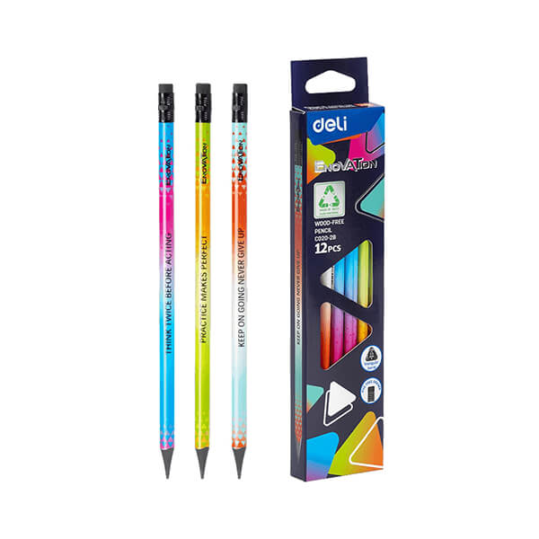 Μολύβια 2B της Deli σε διάφορα χρώματα. Το τρίγωνο εργονομικό σχήμα τους εξασφαλίζει σταθερό κράτημα και άνετη γραφή. Ξύνονται εύκολα με όλες τις κοινές ξύστρες χωρίς να σπάνε χάρη στο wood-free υλικό κατασκευής τους. Με γόμα που σβήνει τέλεια χωρίς να αφήνει υπολείμματα, μουτζούρες ή να σκίζει το χαρτί.