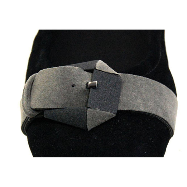 Το χρώμα τους είναι μαύρο και είναι κατασκευασμένα από σουέντ δέρμα. Έχουν μαλακό πάτο και πολύ άνετη εφαρμογή. Στο μπροστινό μέρος υπάρχει λουράκι σε αποχρώσεις του γκρι με κούμπωμα διακοσμητικό. Λιττός σχεδιασμός που συνδυάζεται εύκολα και φοριέται από όλες τις ηλικίες.