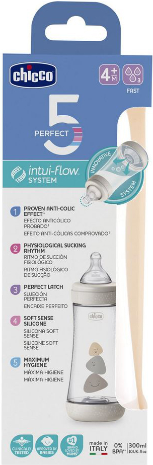 ΜΠΙΜΠΕΡΟ ΠΛΑΣΤΙΚΟ CHICCO P5 UNISEX 300ML ΜΕ ΘΗΛΗ ΣΙΛΙΚΟΝΗ 4Μ+
