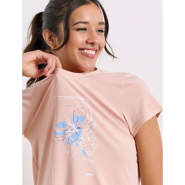 Γυναικεία κοντομάνικη μπλούζα από τη Bodytalk. Έρχεται σε κανονική γραμμή και με σύνθεση από απαλό βαμβακερό ύφασμα. Διαθέτει στρογγυλή λαιμόκοψηκαι ελαφρά πιο μακρύ μήκος στο πίσω μέρος. Διακοσμείται με print και αποτελεί μια μοντέρνα και sporty επιλογή για τα καθημερινά σου outfit.