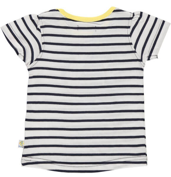 Ερχεται σε λευκό χρώμα, με μπλε μαρίν ρίγες και κίτρινη λεπτομέρεια γύρω από τη λαιμόκοψη.