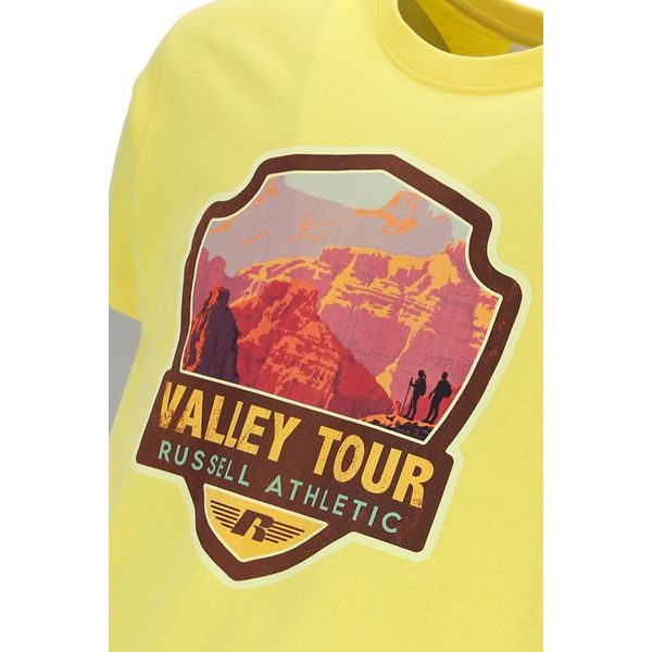 Αθλητικό μπλουζάκι για casual εμφάνιση από την Russell Athletic. Έρχεται σε κανονική γραμμή, με σύνθεση από απαλές βαμβακερές ίνες για άνετη εφαρμογή. Διαθέτει στρογγυλή λαιμόκοψη και μεγάλη στάμπα Valley Tour στο στήθος. Συνδυάστε το με τις βερμούδες και τα παντελόνια της Russell για απαράμιλλο στιλ!