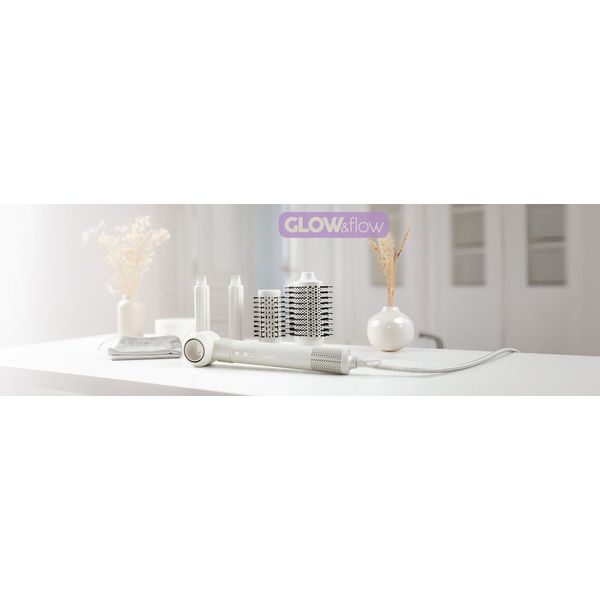 Αξεσουάρ: 3 κεφαλές για styling, 2 αλουμινένιες για μπούκλες Coanda-effect, κεφαλή στεγνώματος, στρογγυλή βούρτσα, οβάλ βούρτσα όγκου
