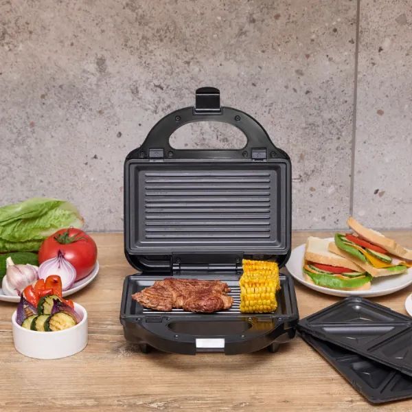 Η τοστιέρα MPM MOP-54 είναι μια πολυλειτουργική συσκευή 5 σε 1 που προσφέρει απεριόριστες δυνατότητες στην κουζίνα σου. Με πέντε αποσπώμενες πλάκες – για βάφλες, τοστ, ντόνατ, μπισκότα shortbread και grill – σου επιτρέπει να δημιουργήσεις εύκολα γλυκές και αλμυρές λιχουδιές για κάθε στιγμή της ημέρας. Οι πλάκες διαθέτουν αντικολλητική επίστρωση για άνετο καθάρισμα, ενώ ο θερμοστάτης ρυθμίζει αυτόματα τη θερμοκρασία για σταθερό και ιδανικό ψήσιμο κάθε φορά.
