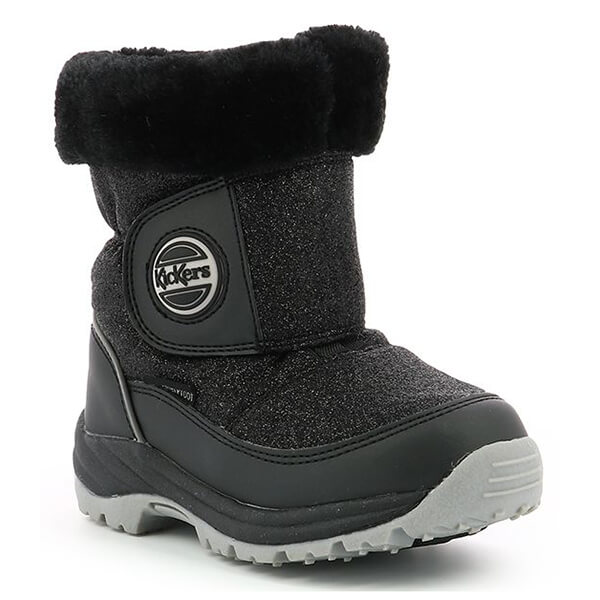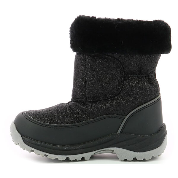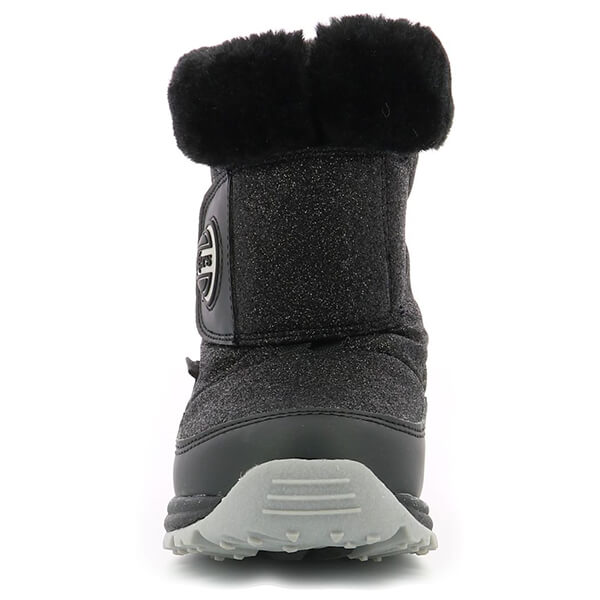 Μποτάκια σε μαύρο χρώμα με μαύρες λεπτομέρειες από glitter, διακοσμημένα με γκρι λεπτομέρειες και διακριτικά εξώραφα. Κατάλληλα για τον χειμώνα και τα χειμερινά σπορ, καθώς είναι αδιάβροχα.