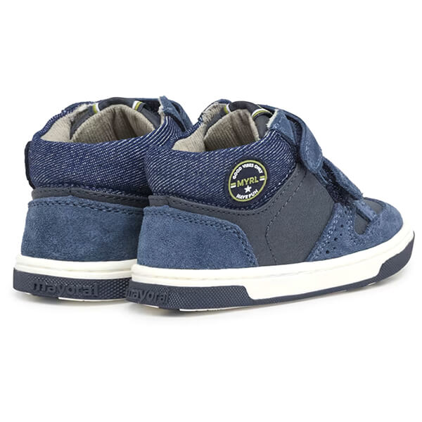 Mayoral σε σκούρο μπλε χρώμα, διακοσμημένα με διακριτικά εξώραφα.