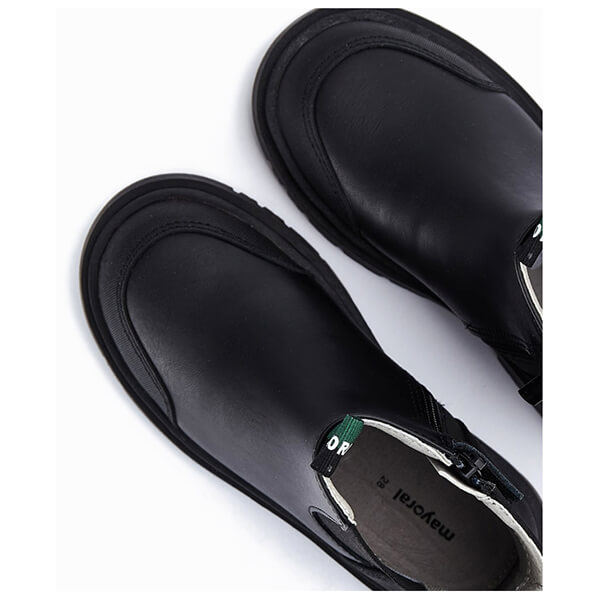 Mayoral σε μαύρο χρώμα, διακοσμημένα με διακριτικά εξώραφα.