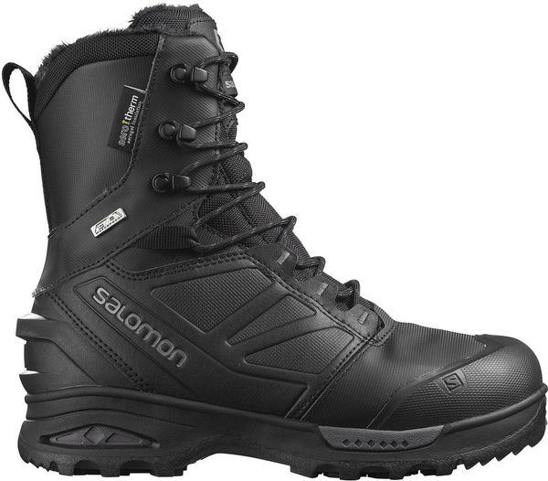 • Είδος>Παπούτσι • Προτεινόμενα αθλήματα>Outdoor • Υλικό κατασκευής> • Πάνω μέρος: Δέρμα και συνθετικό δίχτυ • Ενδιάμεση σόλα: Αφρός EVA • Σόλα: Καουτσούκ • Τεχνολογία κατασκευής> • PU coated leather: Δέρμα με επίστρωση πολυουρεθάνης που το προστατεύει και το κάνει πιο ανθεκτικό, ώστε να αντέχει περισσότερο. • ClimaSalomon WaterProof: Ειδική μεμβράνη που τοποθετείται στο πάνω μέρος προστατεύοντας το πόδι από την υγρασία και τις καιρικές συνθήκες. • Aerotherm Aerogel: Κορυφαία μόνωση, πιο λεπτή και ανάλαφρη αλλά εξαιρετικά ζεστή για πολύ απαιτητικές χειμερινές συνθήκες. • Gusseted tongue: Η γλώσσα είναι συνδεδεμένη με το πάνω τμήμα και στις δύο πλευρές, ώστε να αποτρέπει την εισχώρηση χώματος, άμμου, κλ.π. στο παπούτσι και να παραμένει κεντραρισμένη. • Faux fur lining: Ζεστή επένδυση από συνθετική γούνα για χειμερινές δραστηριότητες. • Textile lining: Απαλή, αεριζόμενη υφασμάτινη επένδυση για ενισχυμένη άνεση. • Regular laces: Δέσιμο με παραδοσιακό σύστημα κορδονιών. • EVA sockliner: Απλό αλλά αποδοτικό εσωτερικό πέλμα από αφρό EVA που προσφέρει αντικραδασμική προστασία και άνεση, αμέσως. • EnergyCell: Αφρώδες υλικό EVA υψηλής απόδοσης που χρησιμοποιείται στην ενδιάμεση σόλα για εξαιρετική απορρόφηση των κραδασμών και προστασία του ποδιού. • Protective toe cap: Ενίσχυση στο μπροστινό μέρος για την προστασία των δαχτύλων. • Winter Contagrip: Για κάθε χειμερινή δραστηριότητα, η σόλα τεχνολογίας Winter Contagrip χρησιμοποιεί ένα μοναδικό μίγμα καουτσούκ που διατηρεί την πρόσφυση ακόμα και σε πολύ χαμηλές θερμοκρασίες. • Λοιπά χαρακτηριστικά> • Βάρος: 688 gr • Drop: 11 mm • Χρώμα>Μαύρο