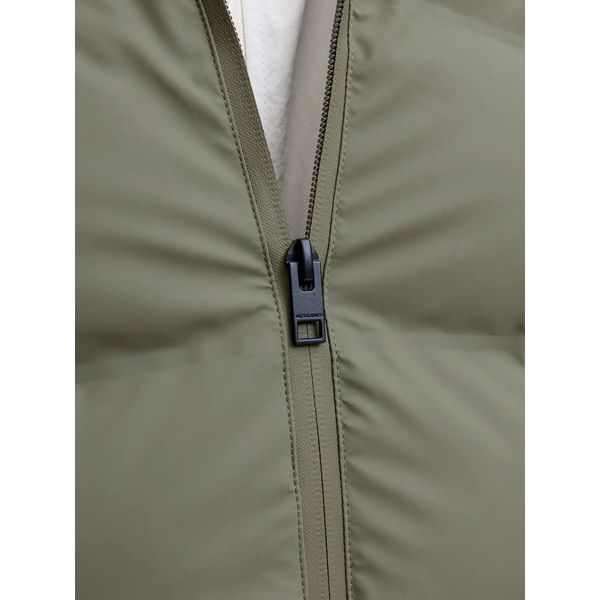 Κλείνει κατά μήκος με φερμουάρ και έχει ψηλή λαιμόκοψη με ενσωματωμένη κουκούλα με κορδόνι περίσφιξη.