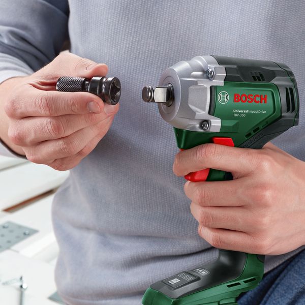 Κατά την αλλαγή των τροχών, το UniversalImpactDrive 18V-350 της Bosch κάνει τη ζωή ευκολότερη. Αυτό το μπουλονόκλειδο μπαταρίας έχει 3 ρυθμίσεις ταχύτητας/ροπής στρέψης, προσφέρει μια μέγιστη ροπή στρέψης 350 Nm και 3.400 κρούσεις το λεπτό. Αυτό το καθιστά ισχυρό και ευέλικτο, όταν πρόκειται για την αντιμετώπιση επίμονων παξιμαδιών τροχού, την αφαίρεση παλιών ή σκουριασμένων μπουλονιών ή το βίδωμα μεγάλων βιδών σε ξύλο με ευκολία. Με μια κεφαλή εξωτερικού τετραγώνου 1/2", αυτό το μπουλονόκλειδο μπορεί να εξοπλιστεί με μια σειρά συμβατών προσαρτημάτων, καθιστώντας το πρακτικό για έναν μεγάλο αριθμό εργασιών. Η τεχνολογία κινητήρα χωρίς ψήκτρες εξασφαλίζει εξαιρετικό ισχύ και μεγαλύτερη διάρκεια ζωής του εργαλείου. Χάρη στον συμπαγή σχεδιασμός του, αυτό το μπουλονόκλειδο είναι εύκολο στη μεταφορά και ιδανικό για εργασίες από πάνω από το κεφάλι. Το ενσωματωμένο ηλεκτρονικό σύστημα Syneon της Bosch προστατεύει το εργαλείο και την μπαταρία σας. Το εργαλείο ανήκει στο σύστημα 18V POWER FOR ALL. Μια μπαταρία μπορεί να χρησιμοποιηθεί σε όλα τα εργαλεία 18V POWER FOR ALL.