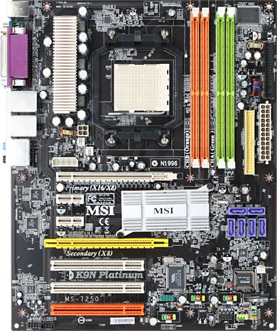 διάστημα). • Υποστήριξη δίσκων: 1 x Ultra DMA 133 / 100 / 66 (σύνδεση 2 IDE συσκευών), 6 x Serial ATA ΙΙ 300 MB/s, RAID 0/ 1/ 0+1 ή RAID 5.• Θύρες επικοινωνίας (Εξωτερικές): 1 PCI Express Lite slot (PCI_E4, συμβατό με PCI Express x1), 2 PCI Express x1 slots, 3 PCI slots, 1 x Parallel port, 1 x Serial port (COM 1), 1 x PS/2 keyboard, 1 x PS/2 mouse, 1 x Coaxial SPDIF out, 1 x IEEE1394 Port, 1 x 6 in 1 audio jack (S/SPDIF out), 4 x USB 2.0 ports, 2 x RJ45 LAN jack.• Εσωτερικές Συνδέσεις: ATX 24-pin power connector, ATX 4-pin 12V CPU power connector, ATX 4-pin VGA power connector, CPU / System / NB FAN connectors, CD-in connector, Clear CMOS button, IrDA infrared module header, Chassis intrusion switch connector, Front panel audio connector, Front panel connector, D-Bracket2 connector, 1 x IEEE1394 connector με δυνατότητα επιπλέον 1 ports, 3 x USB 2.0 connector με δυνατότητα επιπλέον 6 ports, 1 x Floppy disk drive connector, 6 x Serial ATA II connectors, 1 x ATA133 HD connectors.• Πρόσθετα Χαρακτηριστικά: Ενσωματωμένη κάρτα δικτύου Dual LAN 10/100/1000 Fast Ethernet by Vitesse VSC8601. Ενσωματωμένη Κάρτα Ήχου Realtek ALC883, 8-channel audio με jack sensing. Firewire Controller VIA VT6307 (400Mbps).• Εγγύηση: 3 έτη. DOA 7 ημερών • Συσκευασία: Retail. MSI K9N PLATINUM