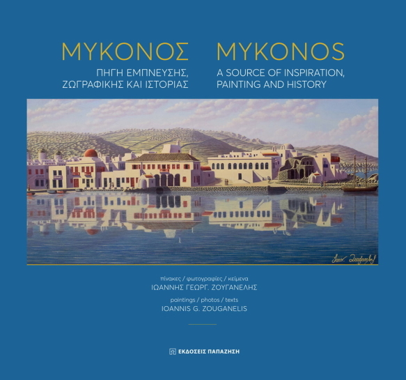 Ένα λεύκωμα με έργα εμπνευσμένα από τη Μύκονο, φιλοτεχνημένα από τον ζωγράφο Ιωάννη Ζουγανέλη, γέννημα-θρέμμα του «νησιού των ανέμων», ο οποίος θέλησε να δείξει τον πλούτο του τόπου του, όχι όμως τον κοσμοπολίτικο, αλλά της ιστορίας, της μυθολογίας, του πολιτισμού και της φύσης. Έτσι, μέσα από τους πίνακές του η ιστορία γίνεται εικόνα, ο μύθος γεφυρώνεται με την πραγματικότητα, αρχαία ιερά και βενετσιάνικα κάστρα διατηρούν την αίγλη και την ομορφιά τους - και ας μην τα σεβάστηκαν τόσοι πειρατές, κουρσάροι και κατακτητές που πέρασαν από τις Κυκλάδες. Δεν λείπουν βέβαια τα ξωκλήσια, οι μύλοι, οι γυναικείες φιγούρες, οι θεότητες και οι αρχαίοι θεοί, που η παλέτα του ζωγράφου αποδίδει με περισσή ζωντάνια.