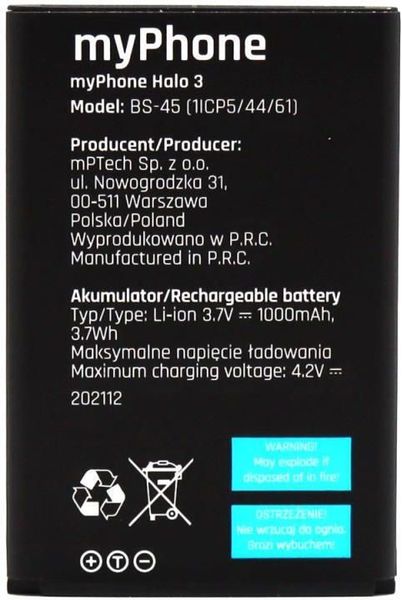 MYPHONE ORIGINAL BATTERY HALO 3