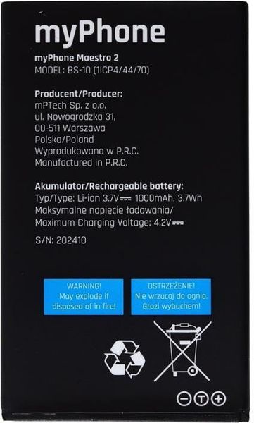 MYPHONE ORIGINAL BATTERY MAESTRO 2 TEL.234978 TEL.234978 MYPHONE MYPHONE ΜΠΑΤΑΡΙΑ