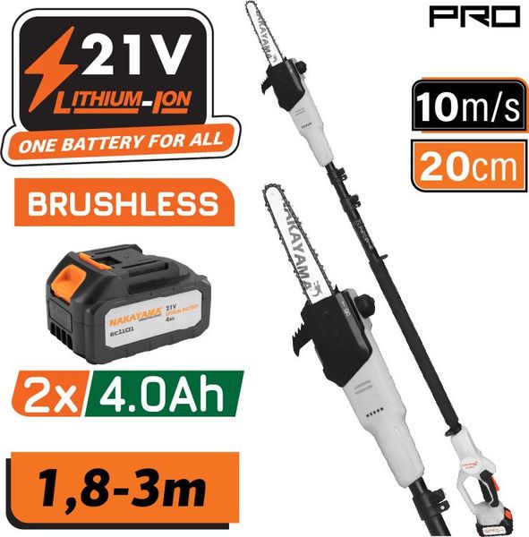 Το τηλεσκοπικό κονταροπρίονο μπαταρίας NAKAYAMA PRO EC1615 είναι ιδανικό για κοπή κλαδιών σε ύψος με ασφάλεια και ευκολία, χωρίς τη χρήση σκάλας. Με ισχυρό brushless κινητήρα και τηλεσκοπικό σχεδιασμό, προσφέρει υψηλή απόδοση και άνεση σε κάθε εργασία κήπου.