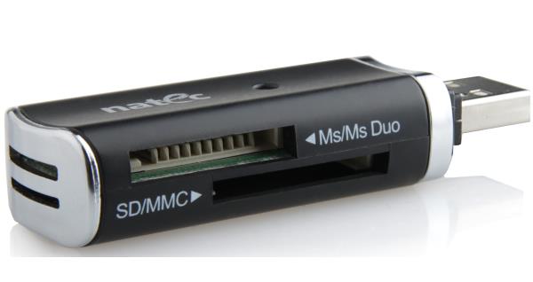 USB card-reader από την Natec, το οποίο μπορεί να χρησιμοποιηθεί και ώς ένα USB stick για SD, MMC, MS, MS-Duo, T-Flash, M2, micro SD, SDHC κάρτες, με σύνδεση USB 2.0! Απλά τοποθετήστε μια συμβατή κάρτα SD, MMC, MS, MS-Duo, T-Flash, M2, micro SD, SDHC από την digicam, MP3-player, κλπ., και μπορείτε να έχετε πρόσβαση στις φωτογραφίες και την μουσική σας από τον υπολογιστή.