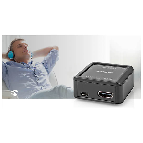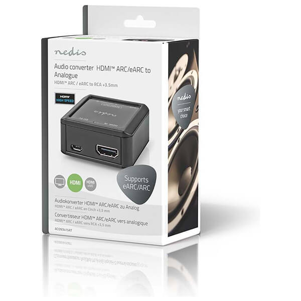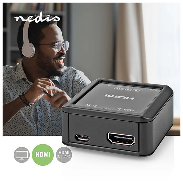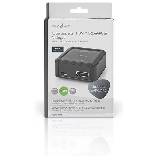 Ο ψηφιακός μετατροπέας ήχου της Nedis επιτρέπει την απομόνωση του σήματος ήχου από μια μετάδοση HDMI. Ενώ το σήμα βίντεο εμφανίζεται σε μια τηλεόραση ή οθόνη, το ηχητικό σήμα μπορεί να μεταφερθεί μέσω του συστήματος ήχου ή του ενισχυτή μέσω της σύνδεσης RCA και 3.5 mm. Η συσκευή αυτή, μετατρέπει τις πιο πρόσφατες μορφές ήχου υψηλής ταχύτητας bit (192 kHz).