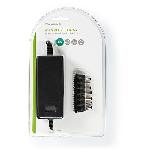 Universal τροφοδοτικό 36W switching με συμπαγή σχεδιασμό έξοδο 5-24V και οθόνη ένδειξης τάσης. Διαθέτει 7 ανταλλακτικά βύσματα σύνδεσης κι αυτό το καθιστά κατάλληλο για πολλές συσκευές και τα περισσότερα notebook.