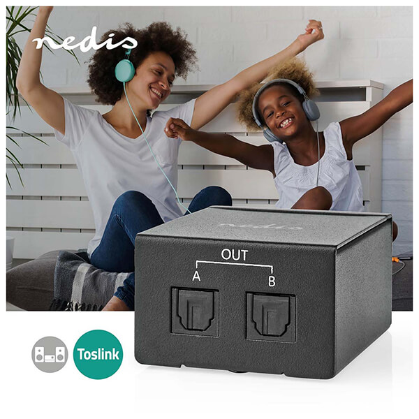 NEDIS ASPL2512BK DIGITAL AUDIO SPLITTER 2-WAY CONNECTION OUTPUT: 2X TOSLINK FEMALE BLACK