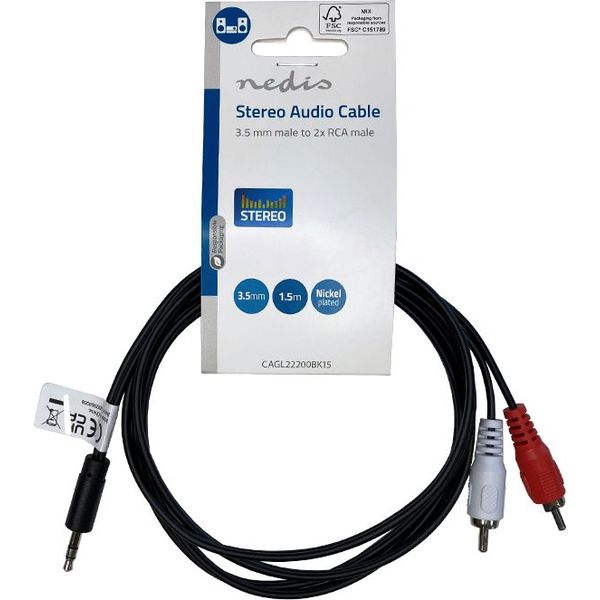 nedis cagl22200bk15 stereo audio cable 35mm male 2x rca male 150m black extra photo 1nedis cagl22200bk15 stereo audio cable 35mm male 2x rca male 150m black extra photo 2