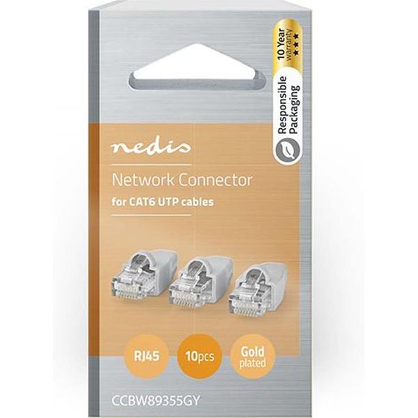 NEDIS CCBW89355GY CAT 6 UTP NETWORK CONNECTOR SET RJ45 MALE-FREE STRAIN RELIEF BOOT 10 PIECES GREYP