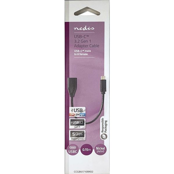 nedis ccgb61710bk02 usb c adapter usb 32 gen 1 usb c male usb a female 015m black photo