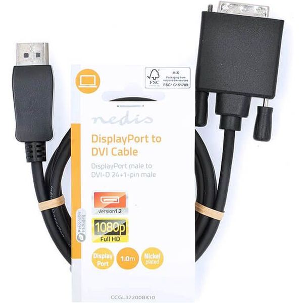 NEDIS CCGL37200BK10 DISPLAYPORT CABLE DISPLAYPORT MALE - DVI-D 24+1-PIN MALE 1.00M BLACK