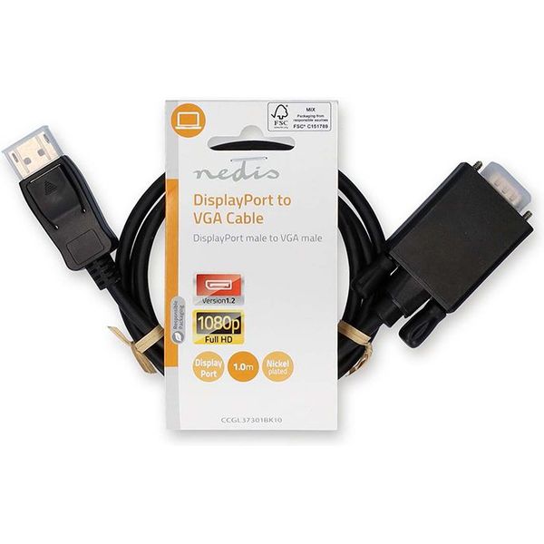 NEDIS CCGL37301BK10 VGA CABLE DISPLAYPORT MALE - VGA MALE 1.00M BLACK PER.266707 PER.266707 NEDIS NEDIS CONVERTERS