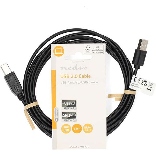 NEDIS CCGL60101BK30 USB 2.0 CABLE, USB-A MALE - USB-B MALE 4.5W 480MBPS 3.00M BLACK