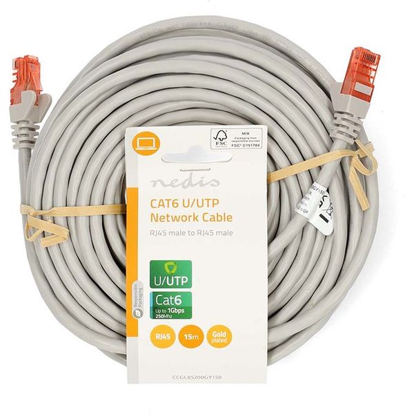 nedis ccgl85200gy150 cat6 cable rj45 male rj45 male u utp 150m greyc photo
