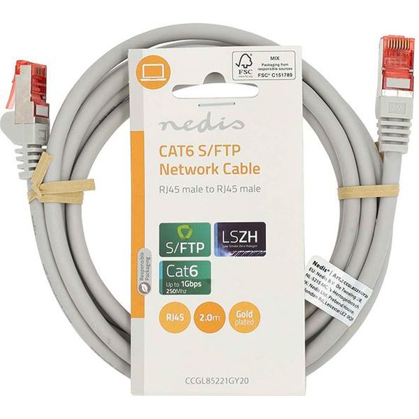 NEDIS CCGL85221GY20 CAT6 NETWORK CABLE RJ45 MALE - RJ45 MALE S/FTP 2.00M GREY