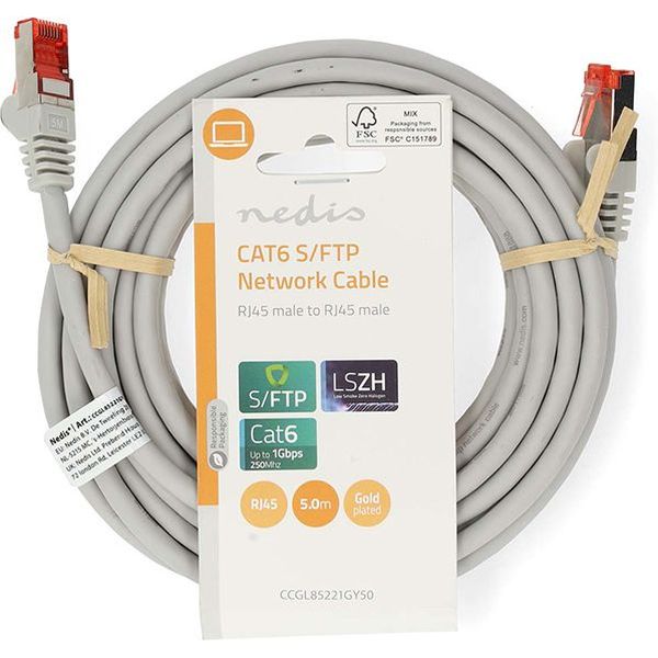 NEDIS CCGL85221GY50 CAT6 NETWORK CABLE RJ45 MALE - RJ45 MALE S/FTP 5.00M GREY