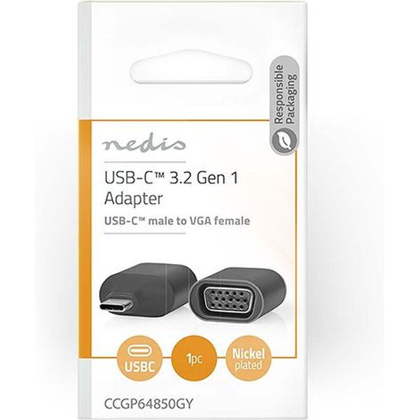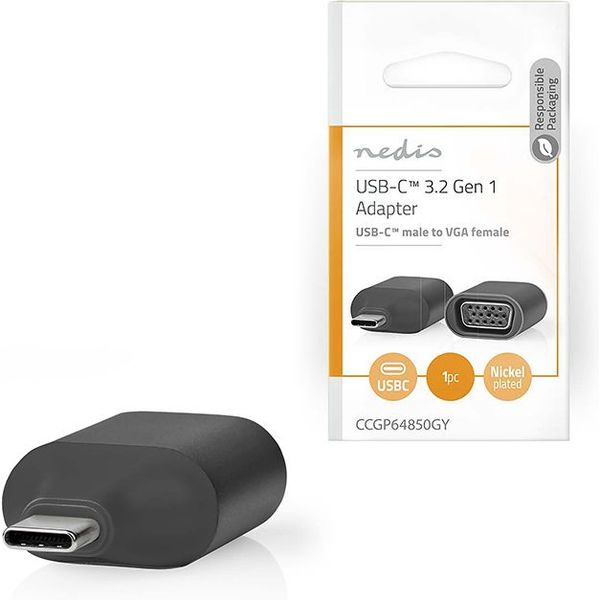 NEDIS CCGP64850GY USB ADAPTER USB 3.2 GEN 1 USB-C MALE VGA FEMALE BLACK / GREY POLYBAG PER.266782 PER.266782 NEDIS NEDIS CONVERTERS