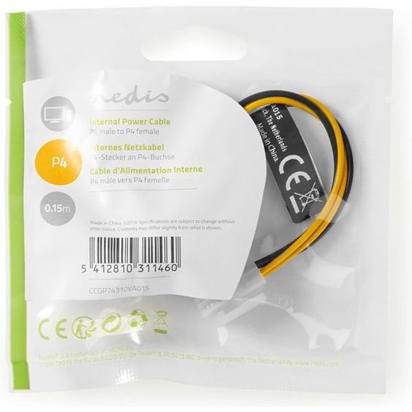 NEDIS CCGP74310VA015 INTERNAL POWER CABLE P4 MALE - P4 FEMALE 0.15 M VARIOUSC