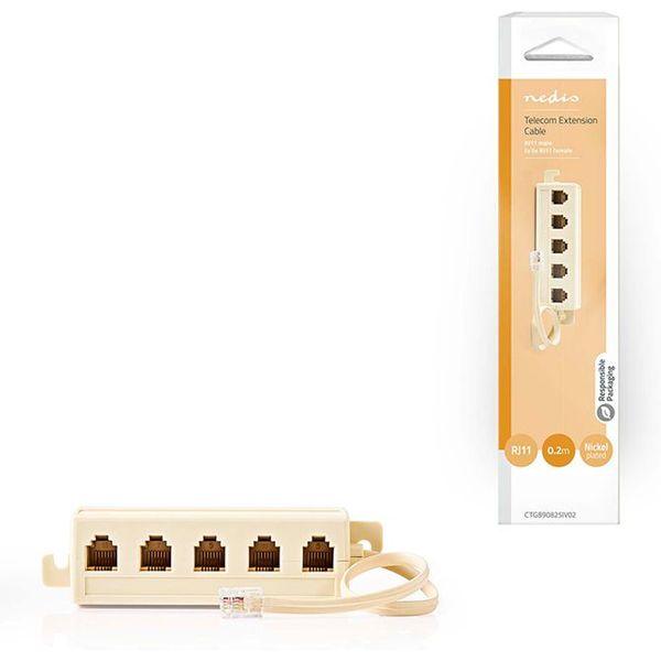 NEDIS CTGB90825IV02 TELECOM EXTENSION CABLE RJ11 MALE - 5X RJ11 (4/6) FEMALE 0.20M IVORY