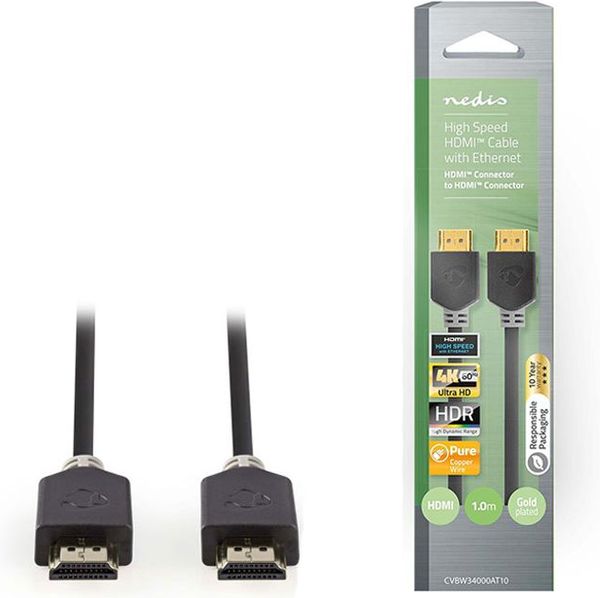 nedis cvbw34000at10 high speed hdmi cable with ethernet hdmi connector hdmi connector 1m anthracite photo