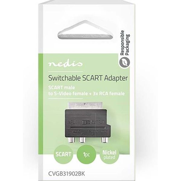 NEDIS CVGB31902BK SWITCHABLE SCART ADAPTER SCART MALE - S-VIDEO FEMALE + 3X RCA FEMALE BLACK