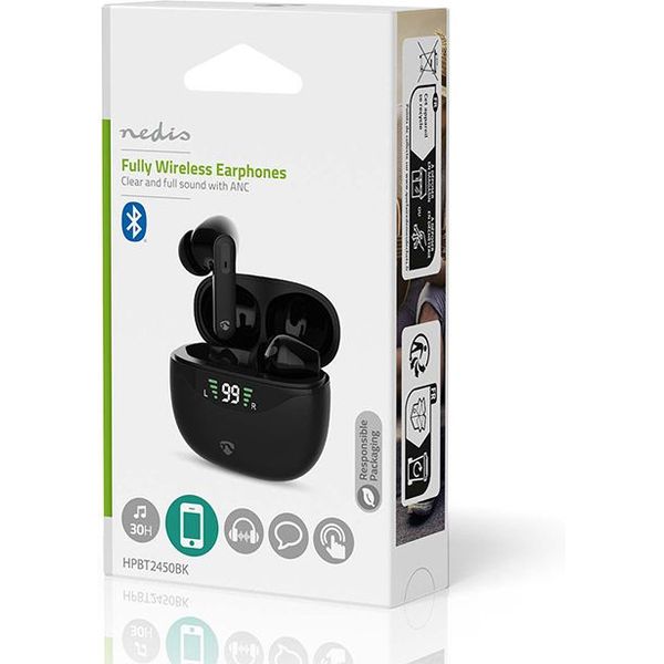 NEDIS HPBT2450BK FULLY WIRELESS BLUETOOTH EARPHONES WITH ANC, BUILT-IN MICROPHONE BLACK TEL.234598 TEL.234598 NEDIS NEDIS BLUETOOTH HEADSET