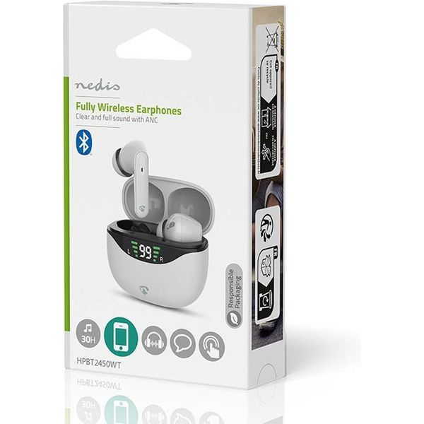 NEDIS HPBT2450WT FULLY WIRELESS BLUETOOTH EARPHONES WITH ANC, BUILT-IN MICROPHONE WHITE TEL.234599 TEL.234599 NEDIS NEDIS BLUETOOTH HEADSET