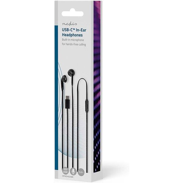 nedis hpwd4024bk wired earphones usb c built in microphone black photo