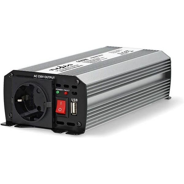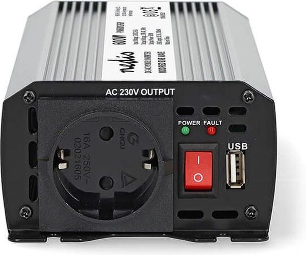 Inverter 600W/12V, με έξοδο ημιτονικής κυματομορφής που μετατρέπει την τάση από μπαταρίες 12VDC σε 230VAC. Το inverter της Nedis σας επιτρέπει να τροφοδοτείτε συσκευές 230V μέσω μιας μπαταρίας 12 VDC. Διαθέτει μια υποδοχή Schuko με γείωση και μία USB type A, ιδανική για τη φόρτιση διαφόρων φορητών συσκευών (smartphone, tablet ή άλλα gadget).