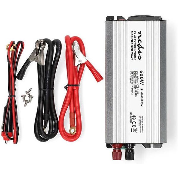 NEDIS PIM60012FGY POWER INVERTER MODIFIED SINE WAVE INPUT: 12 VDC OUTPUT: 1200W 600W SILVER