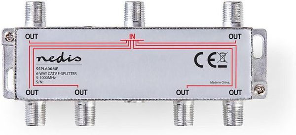NEDIS SSPL600ME CATV F-SPLITTER MAX 10 DB GAIN 5 - 1000 MHZ 6 OUTPUTS (PER.266972)