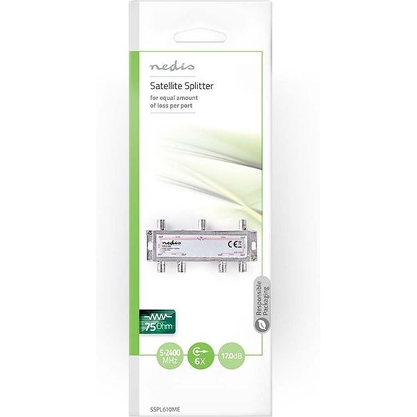 NEDIS SSPL610ME SATELLITE F-SPLITTER MAX 17 DB GAIN 5 - 2400 MHZ 6 OUTPUTS